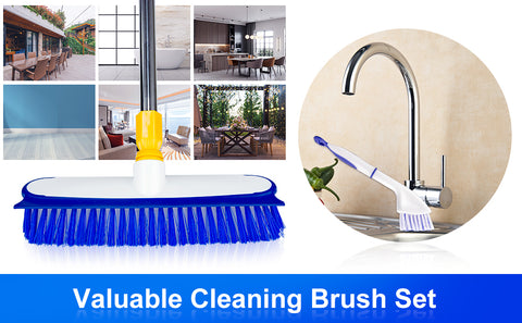 12" FLOOR SCRUB BRUSH: With 12" length cleaning brush head, which can help you clean wider areas in one time. Improve effectiveness and save time when you do housework, so that you can accompany with your families more. And this deck brush bristles is made of PP, the bristles are dense and stiff. Besides, this brush head and bristles adopts integrated design, the bristles are difficult to fall out.