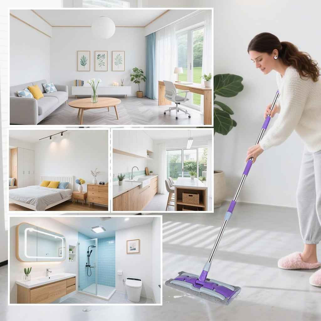 【Wide Application】This microfiber hardwood floor mop is suitable for hardwood, tile, marble and composite floor, and our flat mops for floor cleaning is an ideal choice for cleaning homes, offices, garages and other places! Using our flat mop, you can easily keep the floor clean and shiny